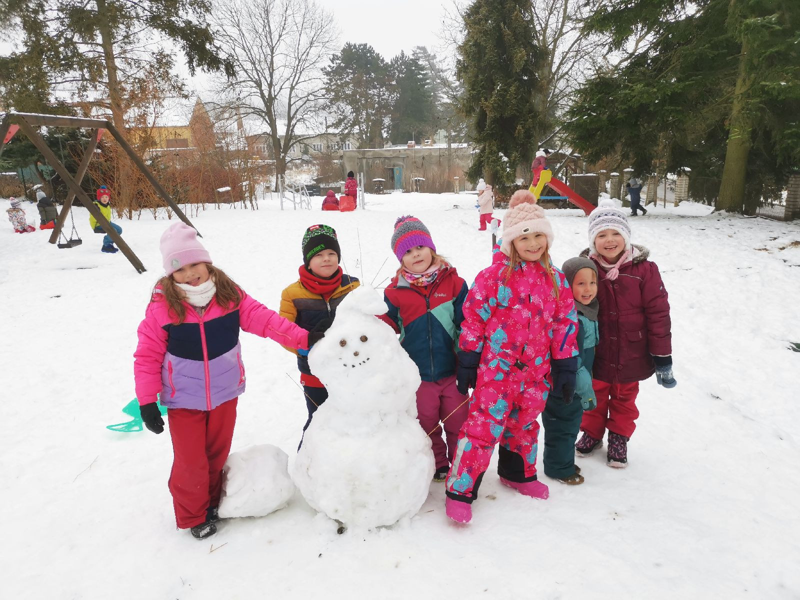 Cvičily jsme hrubou motoriku a spolupráci ve skupině. Dětem se tato dopoledne plné sněhu moc líbila.