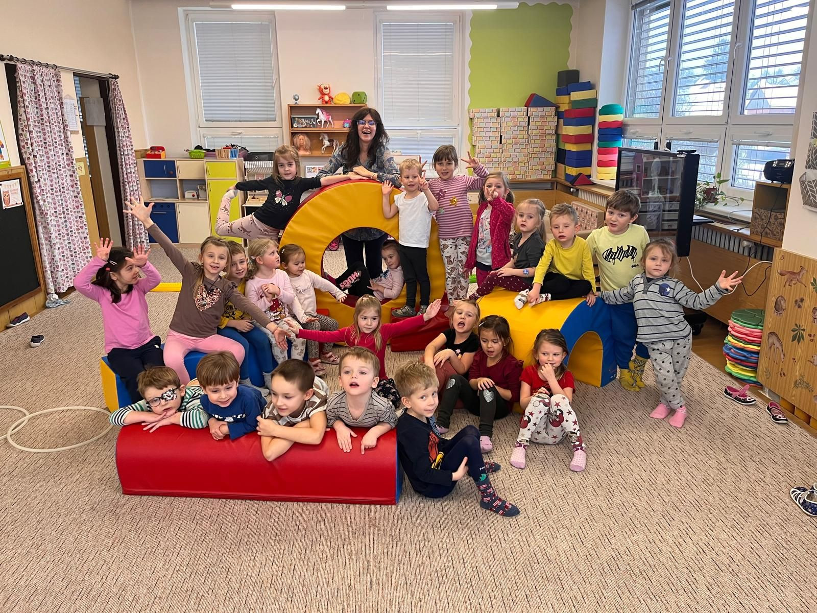 Naše školka se zapojila do projektu Sportimáček. Naše herna se jednou týdně promění v tělocvičnu a děti si užívají radost z pohybu.