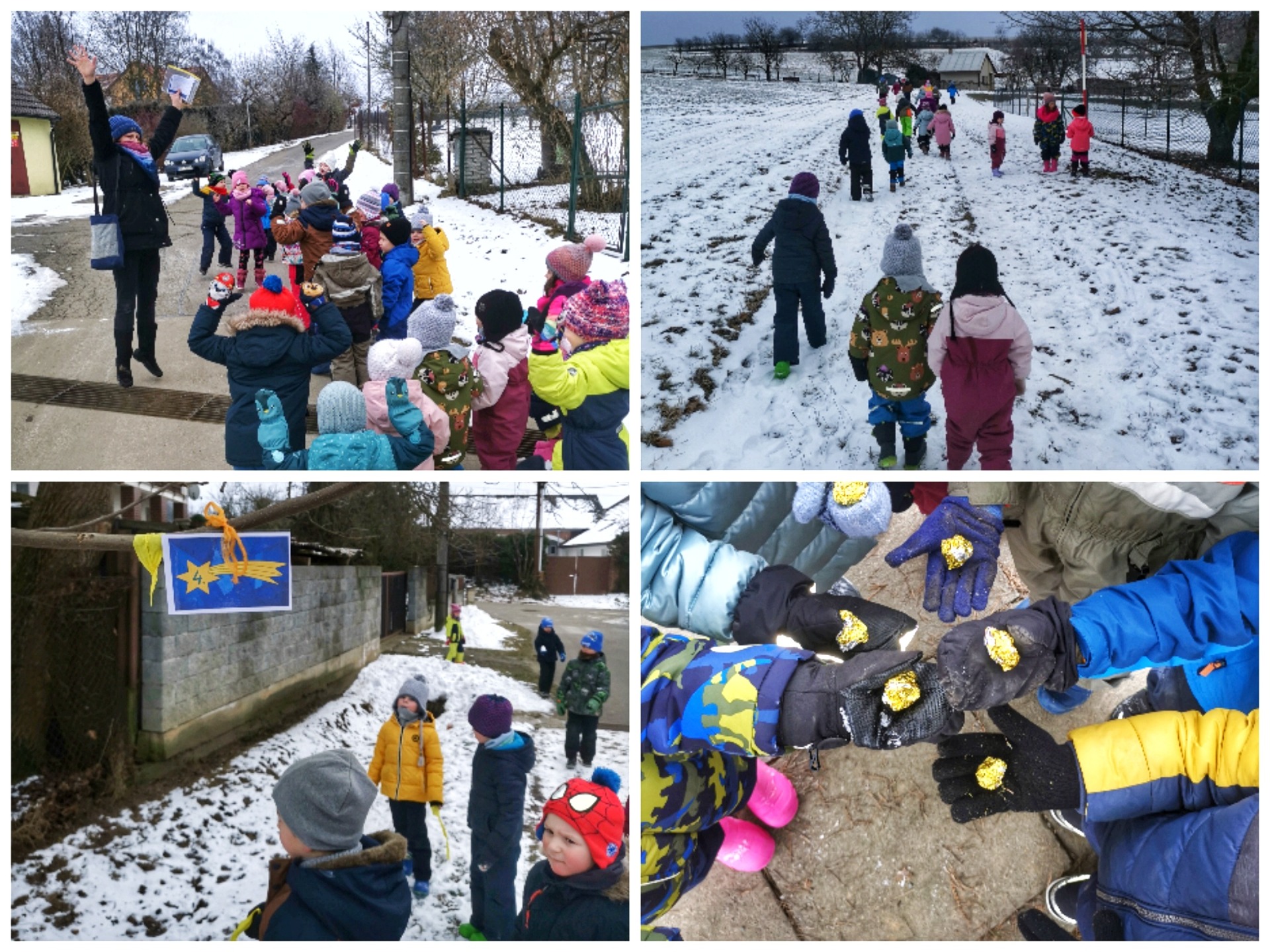 Dnes se naše školka proměnila v cestu do Betléma! Děti se vydaly po stopách Kašpara, Melichara a Baltazara na dobrodružnou stezku. Cestou musely plnit zapeklité úkoly – poznat dary, které králové nesli, zazpívat koledu a sledovat cestu, kterou jim ukazovala kometa. Odměna? Na konci cesty na každého malého poutníka čekal zasloužený královský poklad! a také poslední dárečky od Ježíška.
