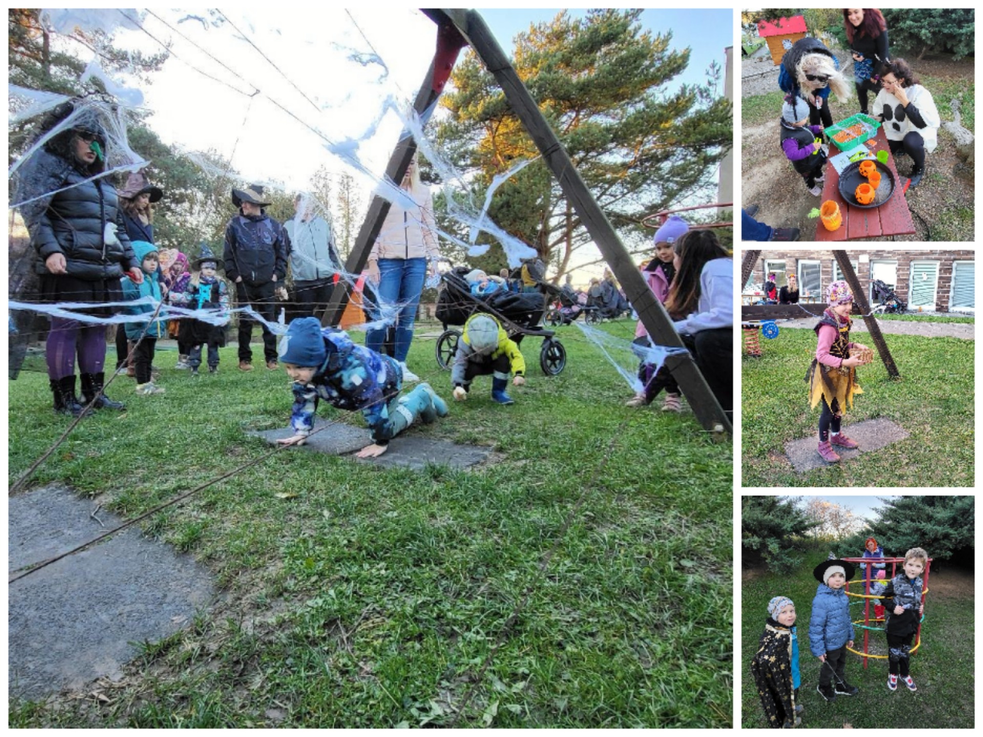 Pro děti i jejich odvážné rodiče byla připravena stanoviště, kde museli prokázat svou šikovnost i nebojácnost. Děti musely prolézt obrovskou pavučinou, poskládat strašidelný obrázek, uvařit čarodějný lektvar a vylovit pavouky a další havěť holýma rukama. 🕸️⋆⁺₊✧