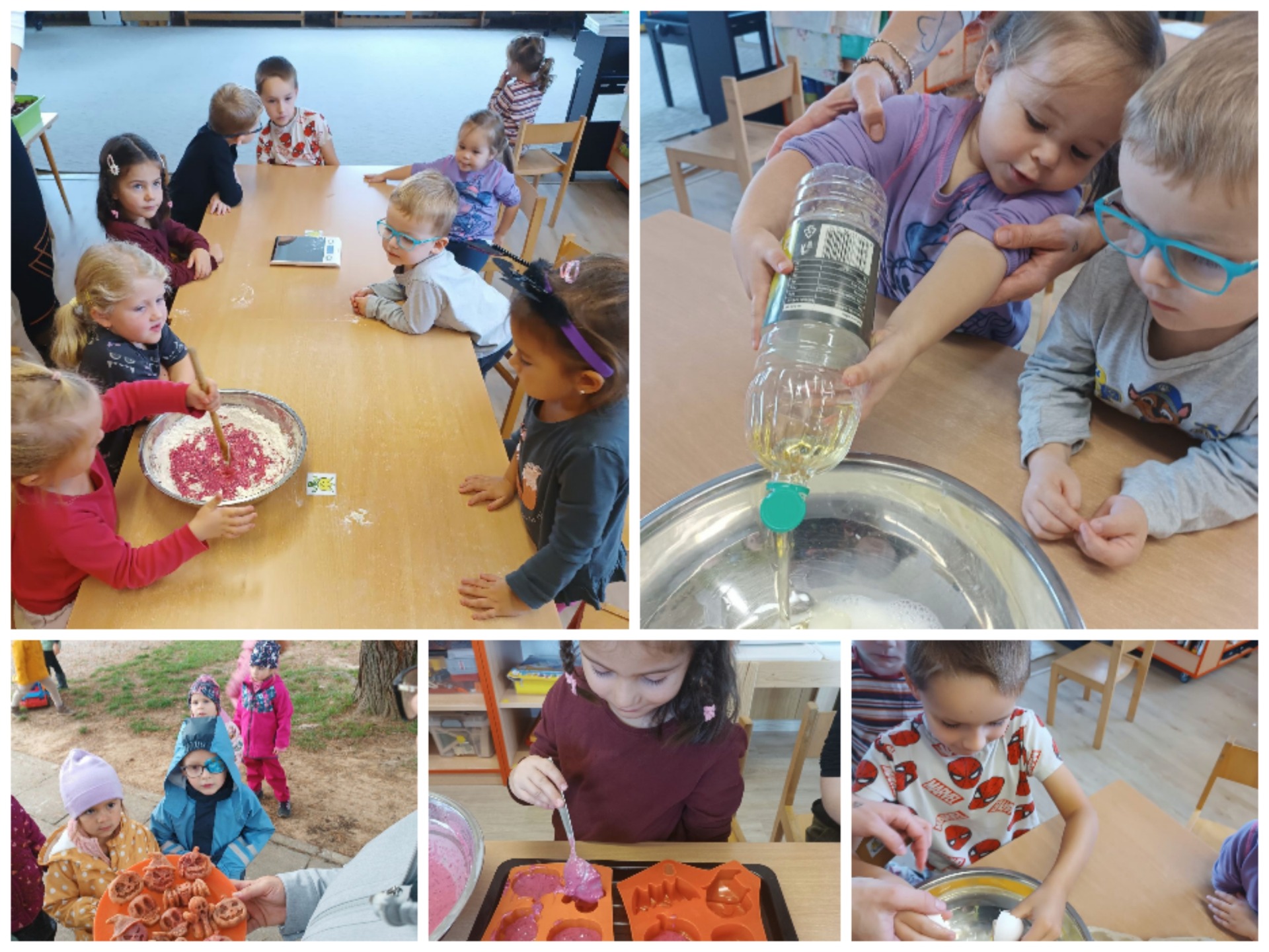 V rámci kuchyňské dílničky jsme se pustili do pečení. Děti si vyzkoušely, jak se brambory krájí (samozřejmě pod bezpečným dohledem) a ochucují. Celou školkou se pak linula úžasná vůně a společná ochutnávka pečených brambor byla tou nejlepší odměnou.