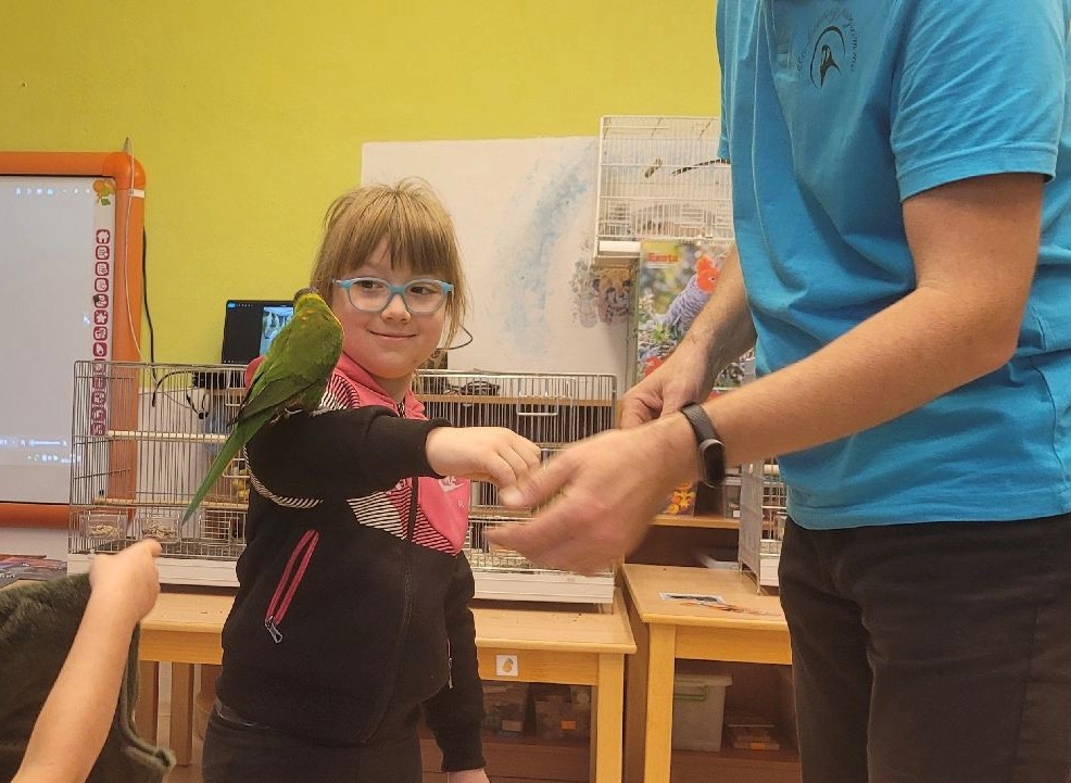 Velkým překvapením bylo, že s sebou přivezl také tukana – oblíbeného opeřence, který si okamžitě získal dětskou pozornost svým vzhledem a chováním. Děti byly nadšené, když mohly některé ptáčky vidět zblízka, slyšet jejich hlas a pozorovat je při krmení.