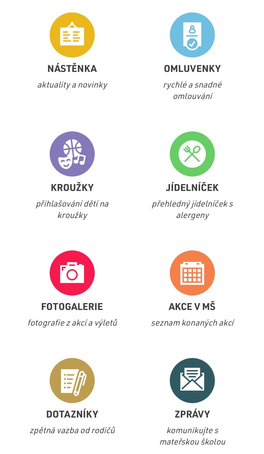 Aplikace je zdarma ke stažení na mobilní telefon (Android i iOS) nebo k dispozici na počítači přes webové rozhraní. Každý rodič od nás obdrží přístupové údaje a jednoduchý návod na instalaci.