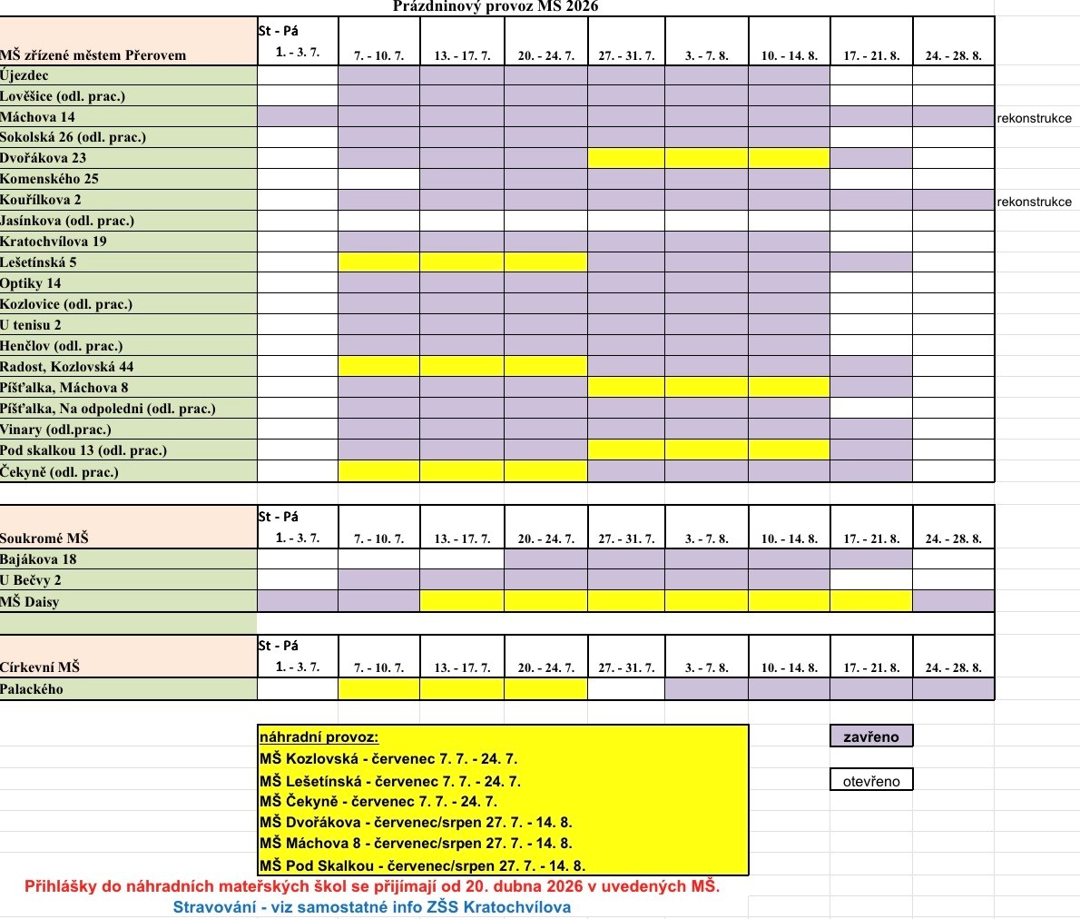 Prázdninový provoz 2026